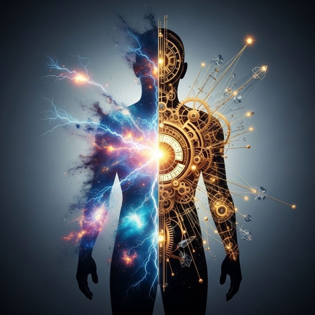 A interação entre eles é o cerne da obra, explorando como essa dualidade influencia desde decisões triviais até as mais complexas.